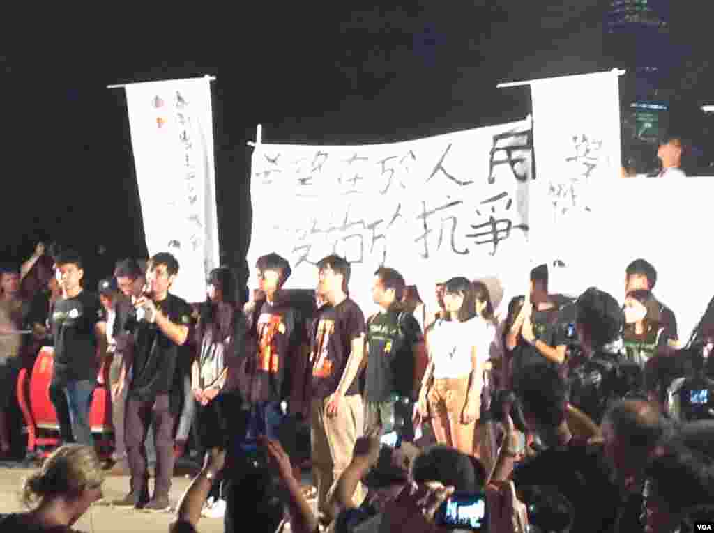 在香港泛民和占中运动在特区政府总部外的添马公园举行的有近万人集会后,数以百计的学生和市民游行前往人大常委会副秘书长李飞下榻的湾仔君悦酒店,要求与李飞对话,抗议人大常委会对香港政改全面落闸......以下是美国之音记者海彦从现场拍摄的照片。