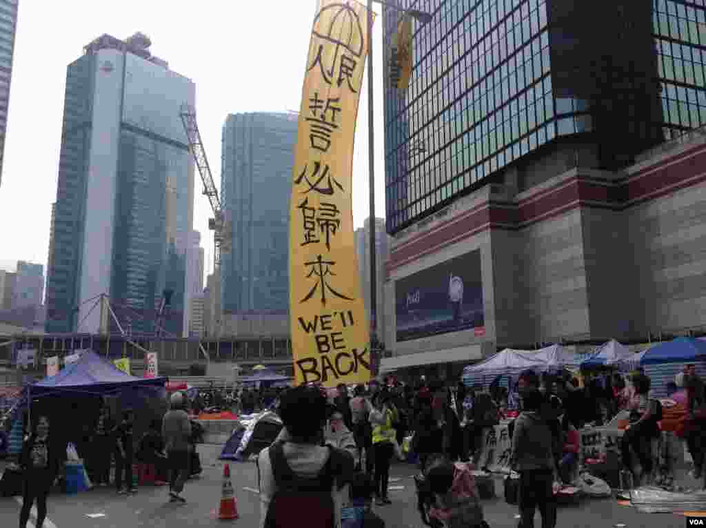 香港争取真普选的占领运动12月11日踏入第75天,这一天也是外界广泛关注的香港警方对金钟占领区展开全面清场的日子。在港府和警方呼吁占领者尽快离开,市民星期四尽量避免前往占领区的同时,上万市民星期三晚云集金钟,希望见证历史,而学联、学民思潮及多位泛民议员都通宵留守。 请看美国之音记者海彦在现场拍摄的照片。